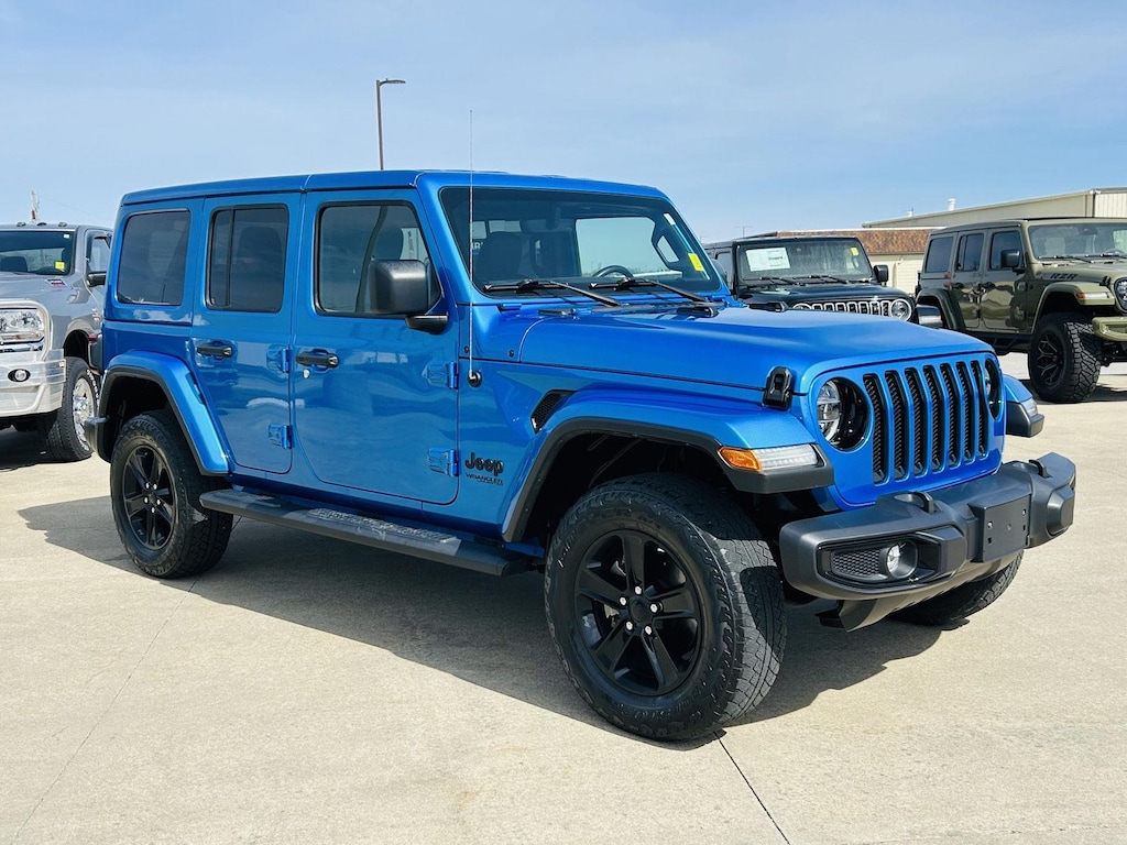 ENGINE: 2.0L I4 DOHC DI TURBO W/ESS, TRANSMISSION: 8-SPEED AUTOMATIC (850RE), QUICK ORDER PACKAGE 22L ALTITUDE, 3.45 REAR AXLE RATIO, HYDRO BLUE PEARLCOAT, BLACK, LEATHER TRIMMED BUCKET SEATS W/2_L, GVWR: 5,500 LBS, LED LIGHTING GROUP, SAFETY GROUP, TRAILER TOW & HD ELECTRICAL GROUP, COLD WEATHER GROUP, BODY COLOR 3-PIECE HARD TOP, FRONT LICENSE PLATE BRACKET, MOPAR BLACK TUBULAR SIDE STEPS, REMOTE START SYSTEM, MOPAR ALL-WEATHER FLOOR MATS