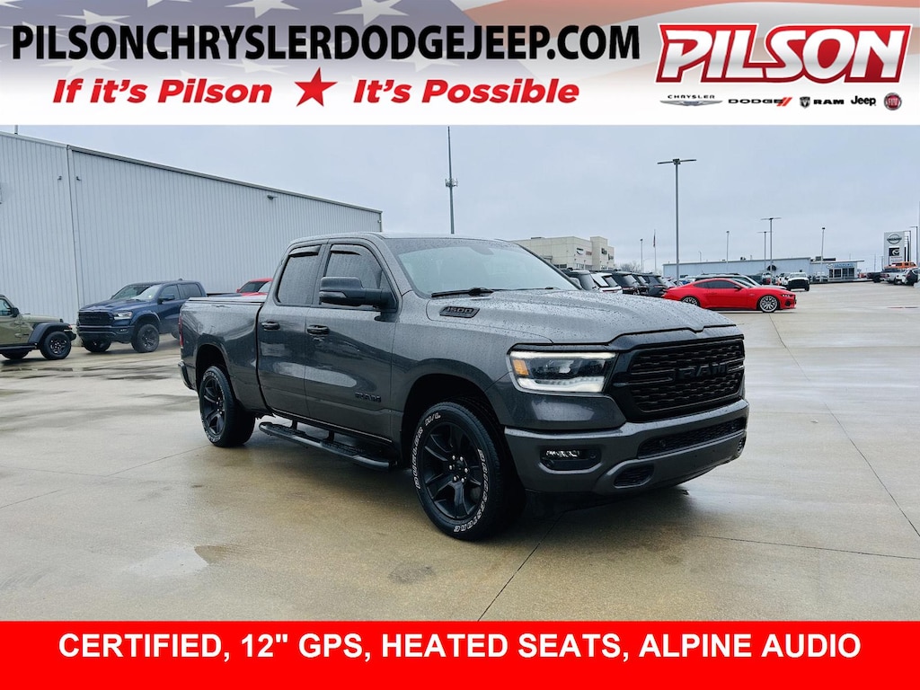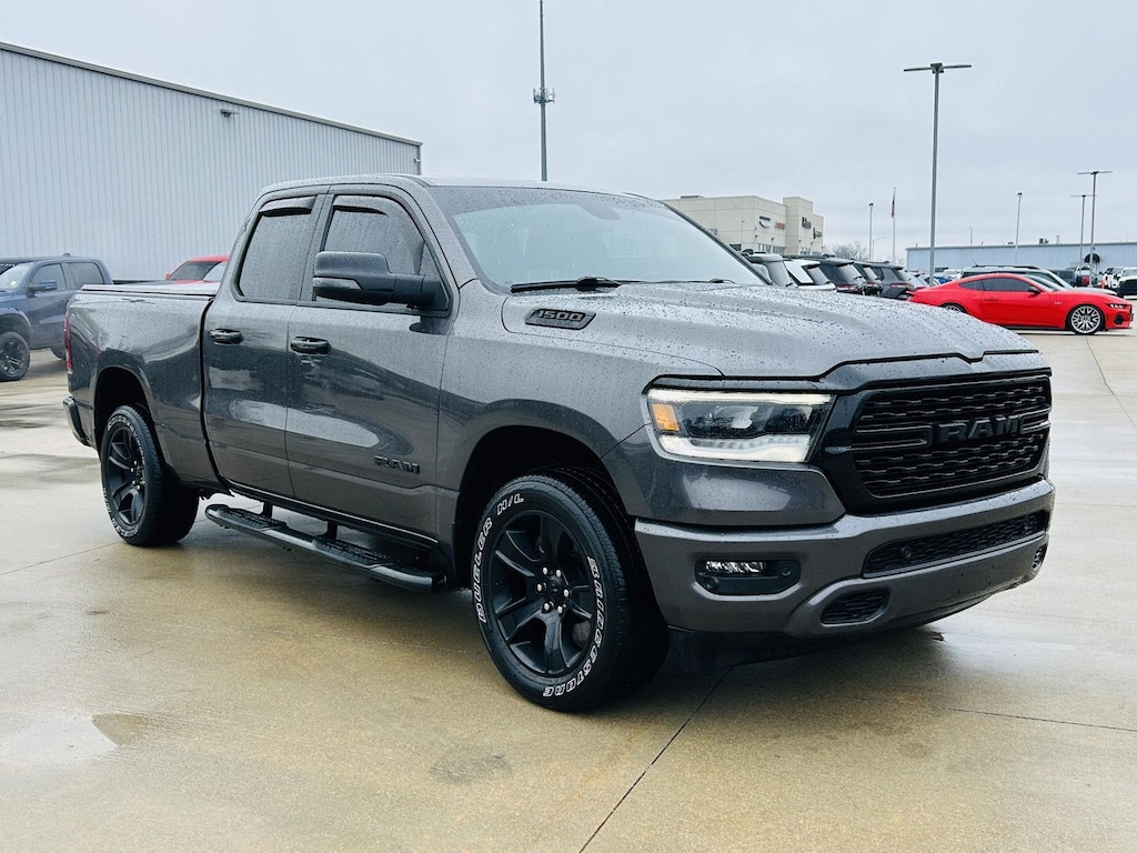 ENGINE: 5.7L V8 HEMI MDS VVT ETORQUE, TRANSMISSION: 8-SPEED AUTOMATIC (8HP75), QUICK ORDER PACKAGE 27Z BIG HORN, 3.21 REAR AXLE RATIO, WHEELS: 20 X 9.0 PREMIUM PAINT/POLISHED, TIRES: 275/55R20 OWL ALL SEASON, MONOTONE PAINT, GRANITE CRYSTAL METALLIC CLEARCOAT, BLACK, DELUXE CLOTH BUCKET SEATS, GVWR: 7,100 LBS, PREMIUM LIGHTING GROUP, NIGHT EDITION, BIG HORN LEVEL B EQUIPMENT GROUP, ANTI-SPIN DIFFERENTIAL REAR AXLE, REAR WHEELHOUSE LINERS, FRONT LICENSE PLATE BRACKET, PICK-UP BOX LIGHTING, RADIO: UCONNECT 5 NAV W/12.0 DISPLAY, 9 AMPLIFIED SPEAKERS W/SUBWOOFER, REMOTE START SYSTEM, TRI-FOLD TONNEAU COVER, BLIND SPOT & CROSS PATH DETECTION, PARKSENSE FRONT/REAR PARK ASSIST W/STOP, 115V AUXILIARY POWER OUTLET