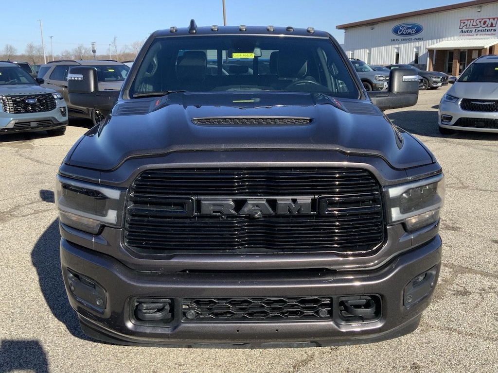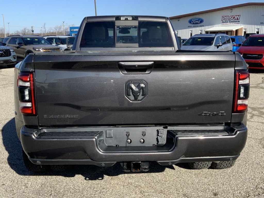 ENGINE: 6.7L I6 CUMMINS HO TURBO DIESEL, TRANSMISSION: 6-SPEED AUTOMATIC AISIN AS69RC HD, QUICK ORDER PACKAGE 21H LARAMIE, 3.73 AXLE RATIO, WHEELS: 17" X 6.0" BLACK MACHINED ALUMINUM, TIRES: LT235/80R17E BSW AS, GRANITE CRYSTAL METALLIC CLEARCOAT, BLACK, LEATHER TRIMMED BUCKET SEATS, GVWR: 14,000 LBS, NIGHT EDITION, TOWING TECHNOLOGY GROUP, DUAL REAR WHEELS, LARAMIE LEVEL 1 EQUIPMENT GROUP, 220 AMP ALTERNATOR, DUAL ALTERNATORS RATED AT 440 AMPS, 5TH WHEEL/GOOSENECK TOWING PREP GROUP, POWER SUNROOF, PAINTED FLAT CAB-LENGTH SIDE STEPS, CLEARANCE LAMPS, RADIO: UCONNECT 5 NAV W/12.0" DISPLAY, BLIND SPOT & CROSS PATH DETECTION, CTR STOP LAMP W/CARGO VIEW CAMERA